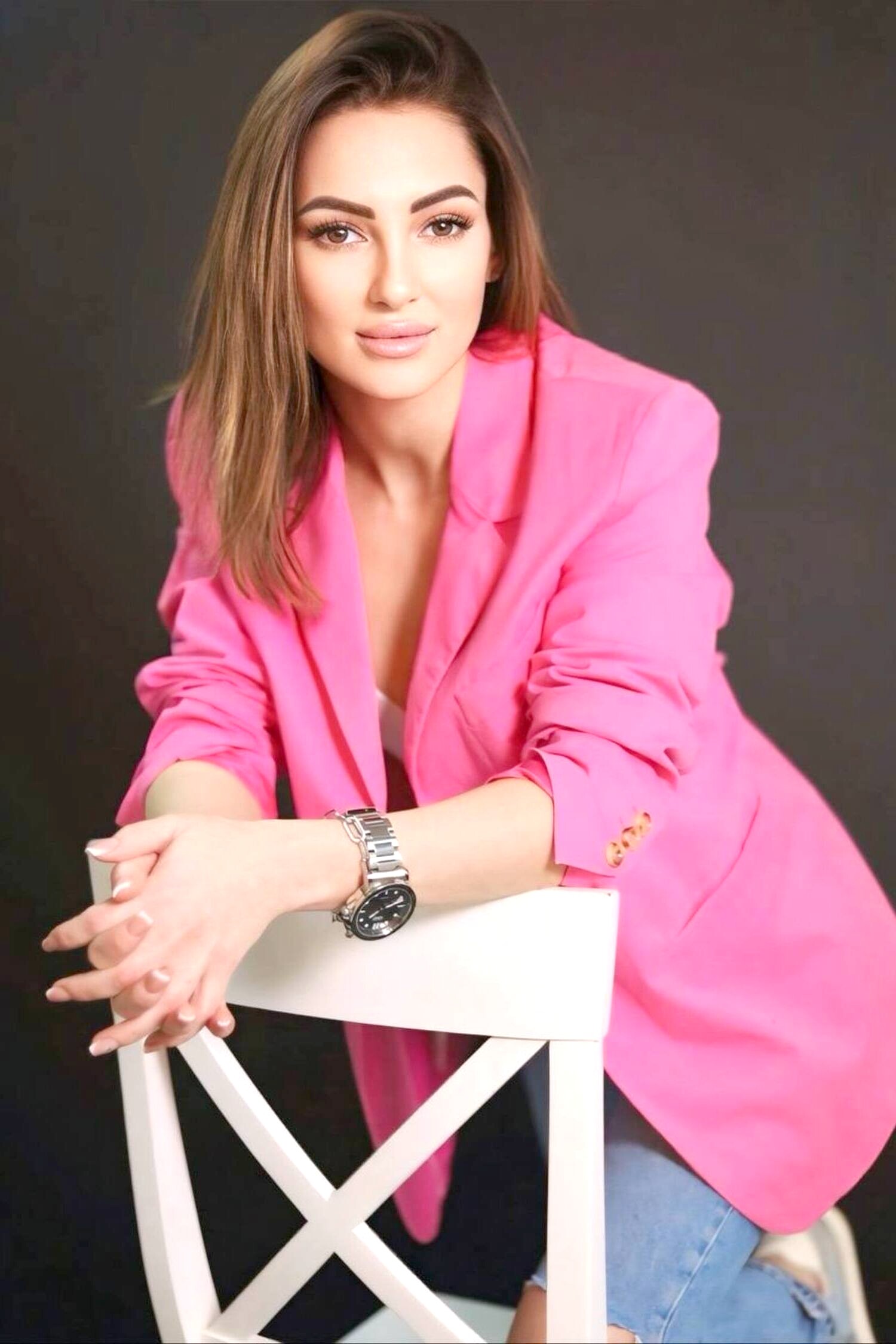 Hair color: dark brown