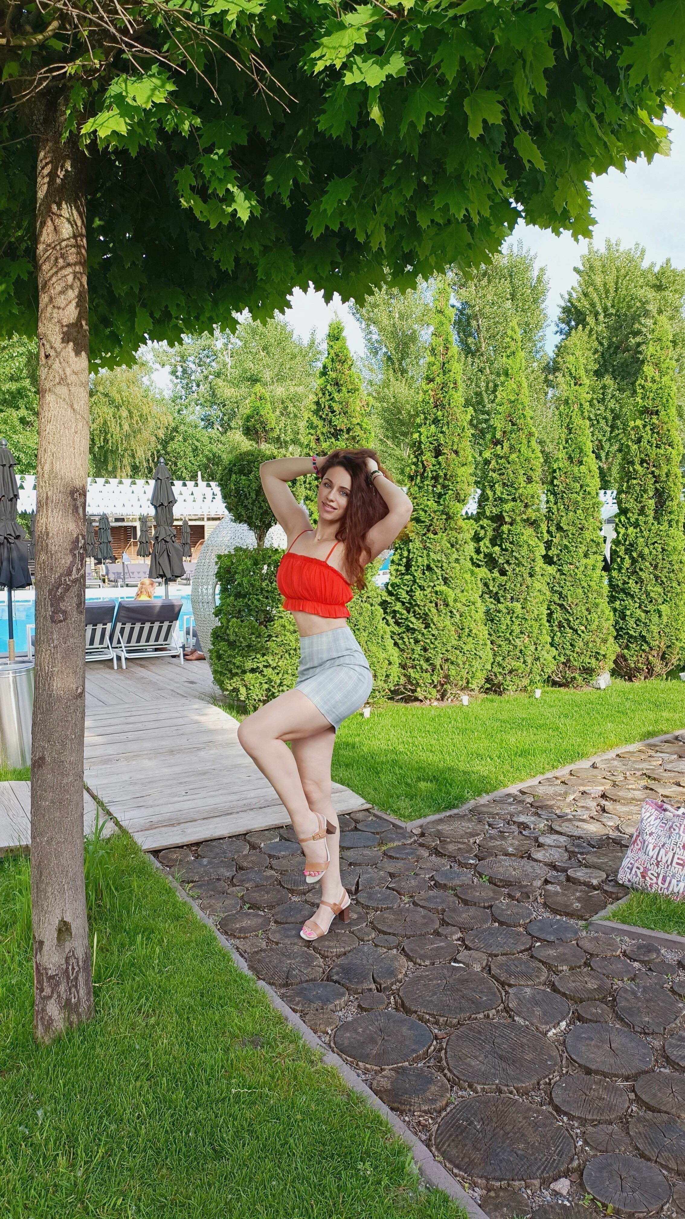 I am a very cheerful and positive girl. I like to develop my mind and body. I go to dances and gymnastics. I also go to the gym. I do stretching, do you know what it is? I have my own dance studio and teach people of different ages to dance. I always find time for dancing. Even when I relax with friends in the forest, I put on music and do this and enjoy my pastime