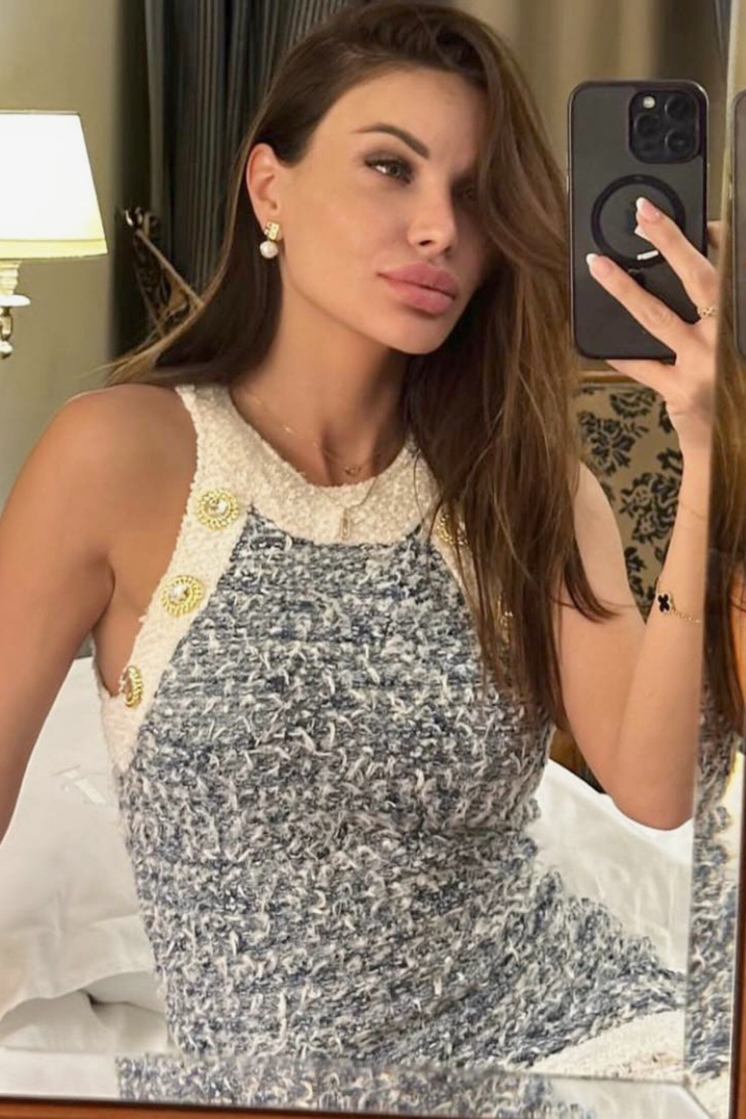 Hair color: dark brown